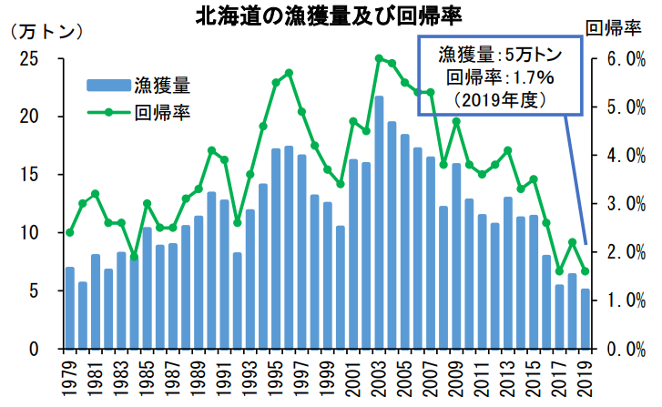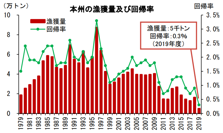 ところが近年、放流数はほぼ同じなのに、戻ってくる割合だけが激減しています。