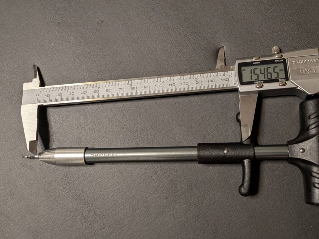 肝心な、先端から掴むところまでの長さは約155mmだったので、結構長いミノーにも対応できます。