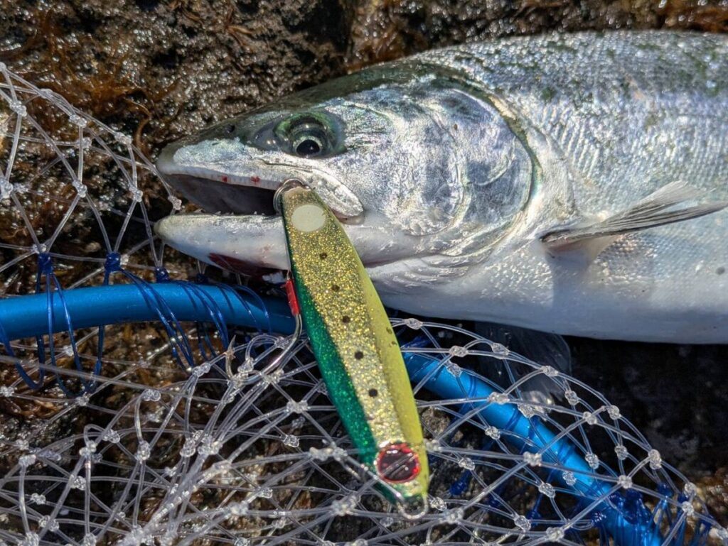 購入後、早速サクラマス釣りで使ってみました。今回はシングルフックで挑戦。